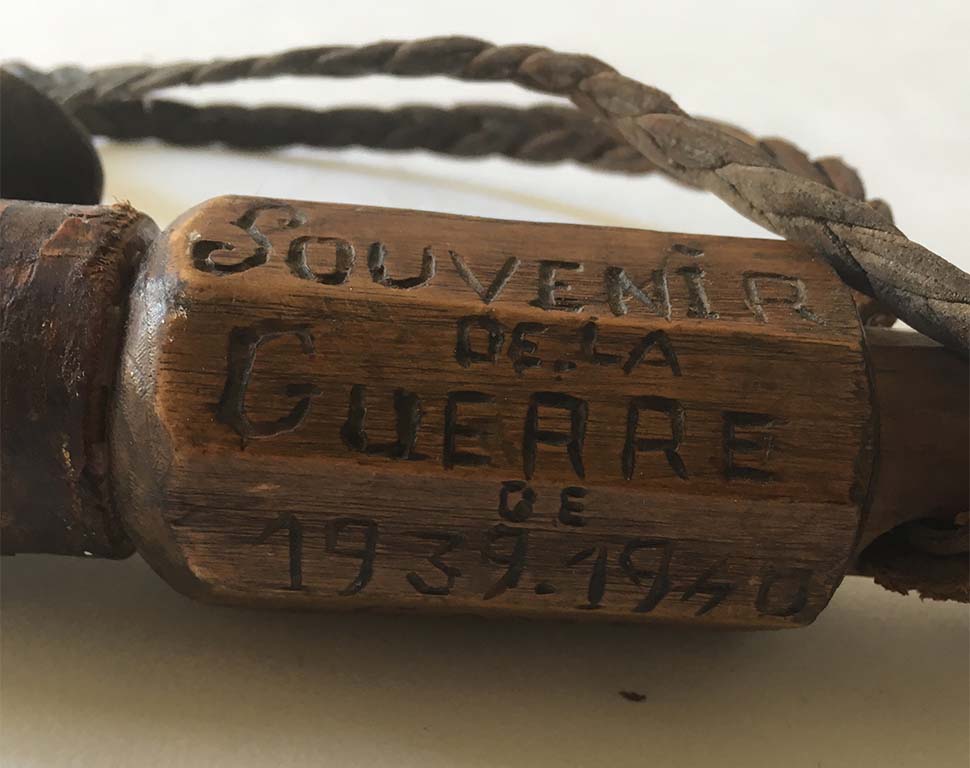 Marc Ivain-Debouchaud, Canne n°3, 2010-2015, canne de prisonnier de la seconde guerre mondiale, nettoyée et ferrée au bout. Vendeur rencontré au vide-grenier de Ladoix-Serrigny (21), en 2018. Coll. Musée du Bricolage. [Renseignements fournis par le vendeur]