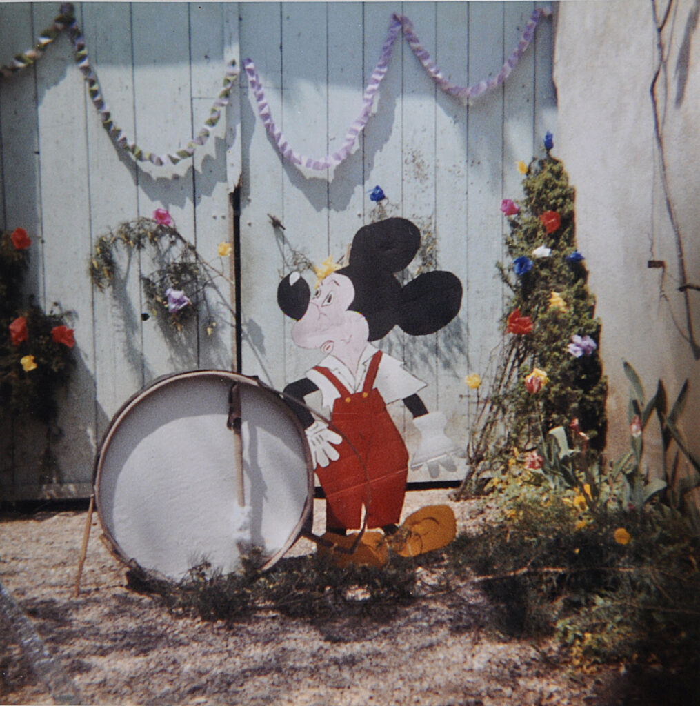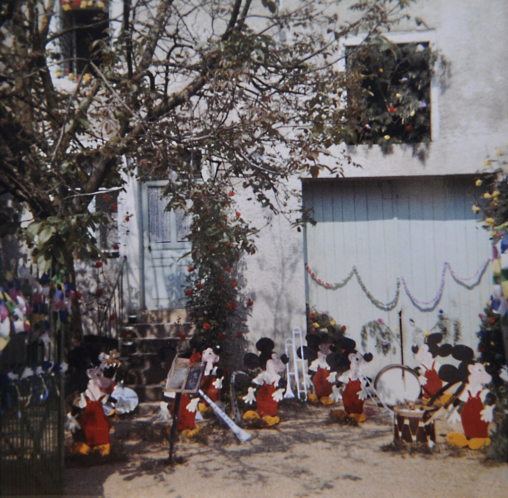 Jean Dessus, Orchestre de petits mickeys, installation dans la cour de sa maison, Ahuy (21), années 1980. Coll. DD.