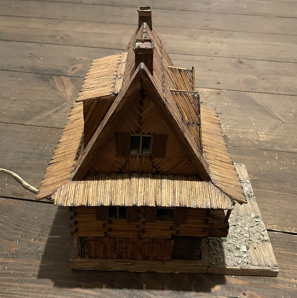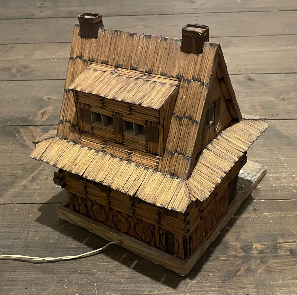 Publié le par Musée du BricolageMaison éclairée (allumettes) Anonyme, Maison éclairée, bois pyrogravé, allumettes, gravier, moustiquaire, ampoule et alimentation électrique, achat sur le net, 2024. Coll. Musée du Bricolage.