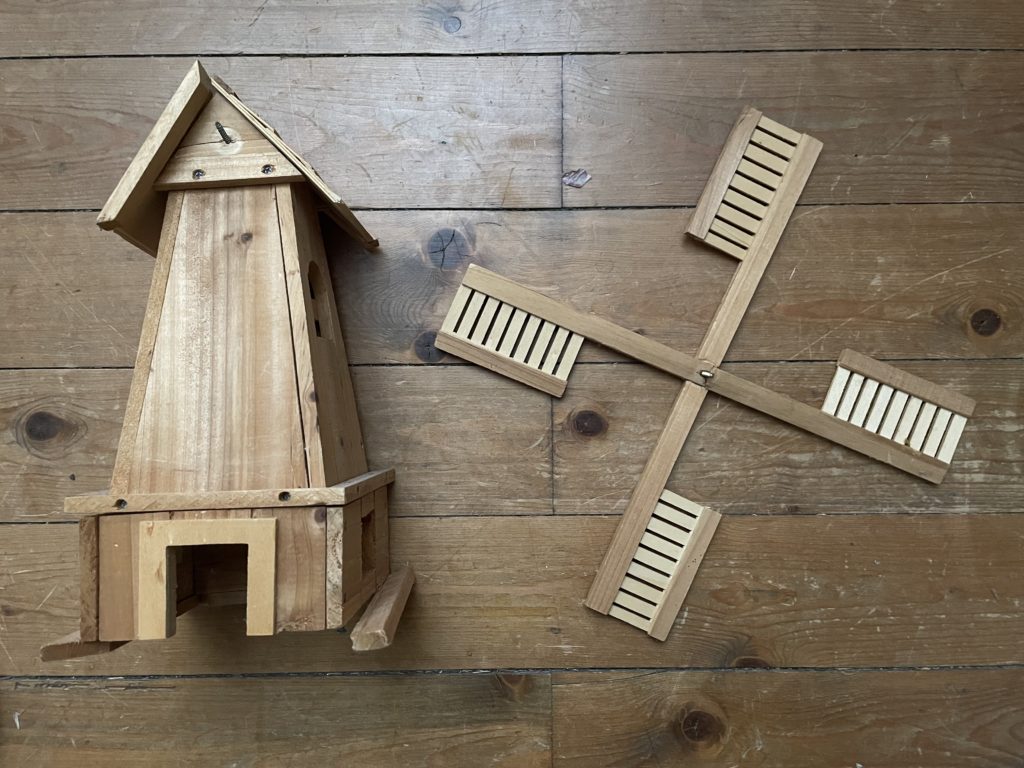 Publié le par Musée du BricolageMoulin low-fi Anonyme, Moulin, planchettes de cagettes, vis et clous. Acheté dans un vide-grenier, 2023. Coll. Musée du Bricolage. [À restaurer]